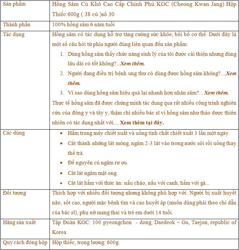 Lưu ý: Hồng sâm chính phủ Hàn Quốc là sản phẩm chăm sóc sức khỏe nổi tiếng, trên thị trường có rất nhiều thương hiệu sản xuất sản phẩm hồng sâm. Nhưng 2 yếu tố quyết định đến chất lượng sản phẩm hồng sâm là: tuổi sâm (phải đặt trên 6 năm tuổi, dưới 6 năm tuổi rất ít giá trị) và nguồn gốc nguyên liệu sâm (tại Hàn Quốc chỉ có đãy núi Geumgangsan mới có chất lượng sâm tốt nhất). Bởi vậy khách hàng khi mua sản phẩm hồng sâm lưu ý 2 yêu tố này.